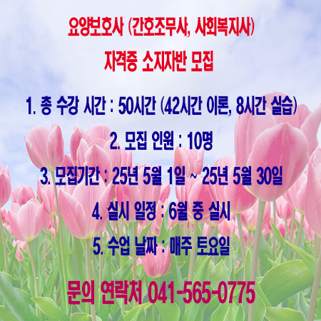 천안경희간호학원, 요양보호사교육원 수강생을 수시 모집합니다.
